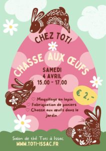 Si vous cherchez un site agréable ou vous pouvez boire un bon thé ou café en bonne compagnie, être entouré de joie et de créativité, et pourquoi pas trouver un objet déco à votre goût, c’est chez nous, juste à l’est du bourg d’Issac : à bientoti !